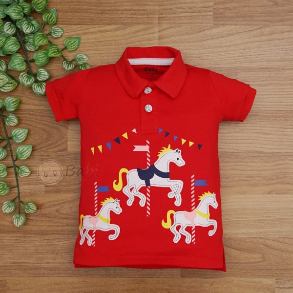 Áo thun cổ trụ in hình chú ngựa may mắn được thiết kế với cổ trụ phối nút gài đẹp mắt mang đến phong cách năng động, hiện đại.